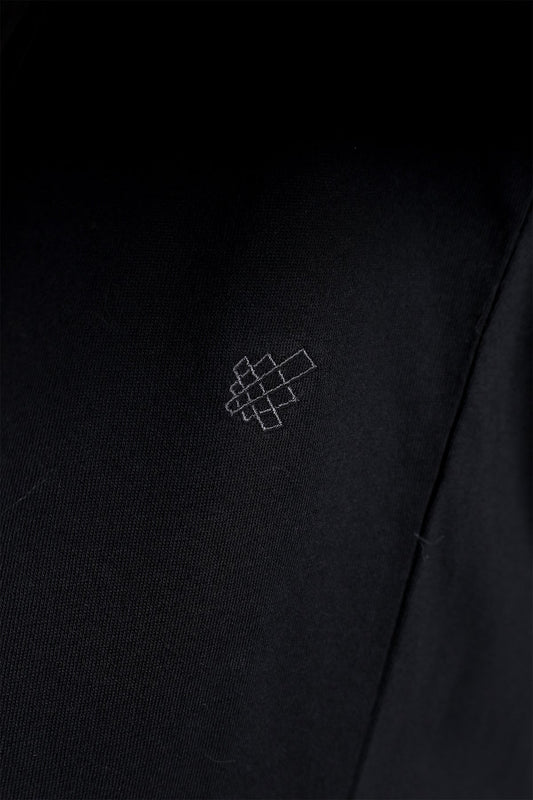 Waffle Knit Henley Long Sleeve T-Shirt - Black